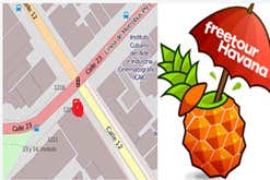 Nella seguente immagine troverete una mappa del punto di incontro e del logo di Free Tour Havana.