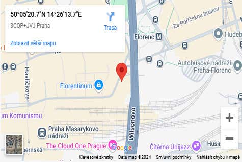 15 minuti prima dell'ora indicata, ci troveremo al seguente indirizzo Na Florenci 1332/23, 110 00 Nové Město, vicino alla stazione della metro Masarykovo nádraží. La guida vi starà aspettando con un ombrello arancione. Vi preghiamo di essere puntuali.