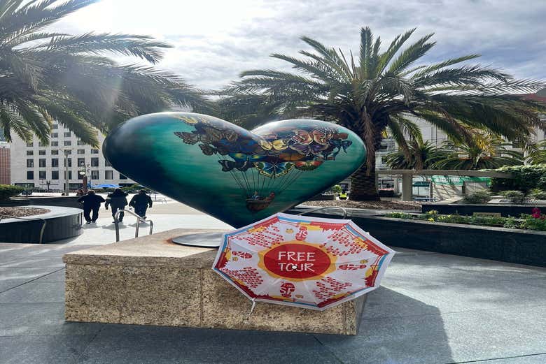 Ci troveremo a Union Square, precisamente accanto alla scultura del cuore con le farfalle, al 389 di Post Street. Riconoscerete la guida grazie al suo ombrello bianco e arancione.